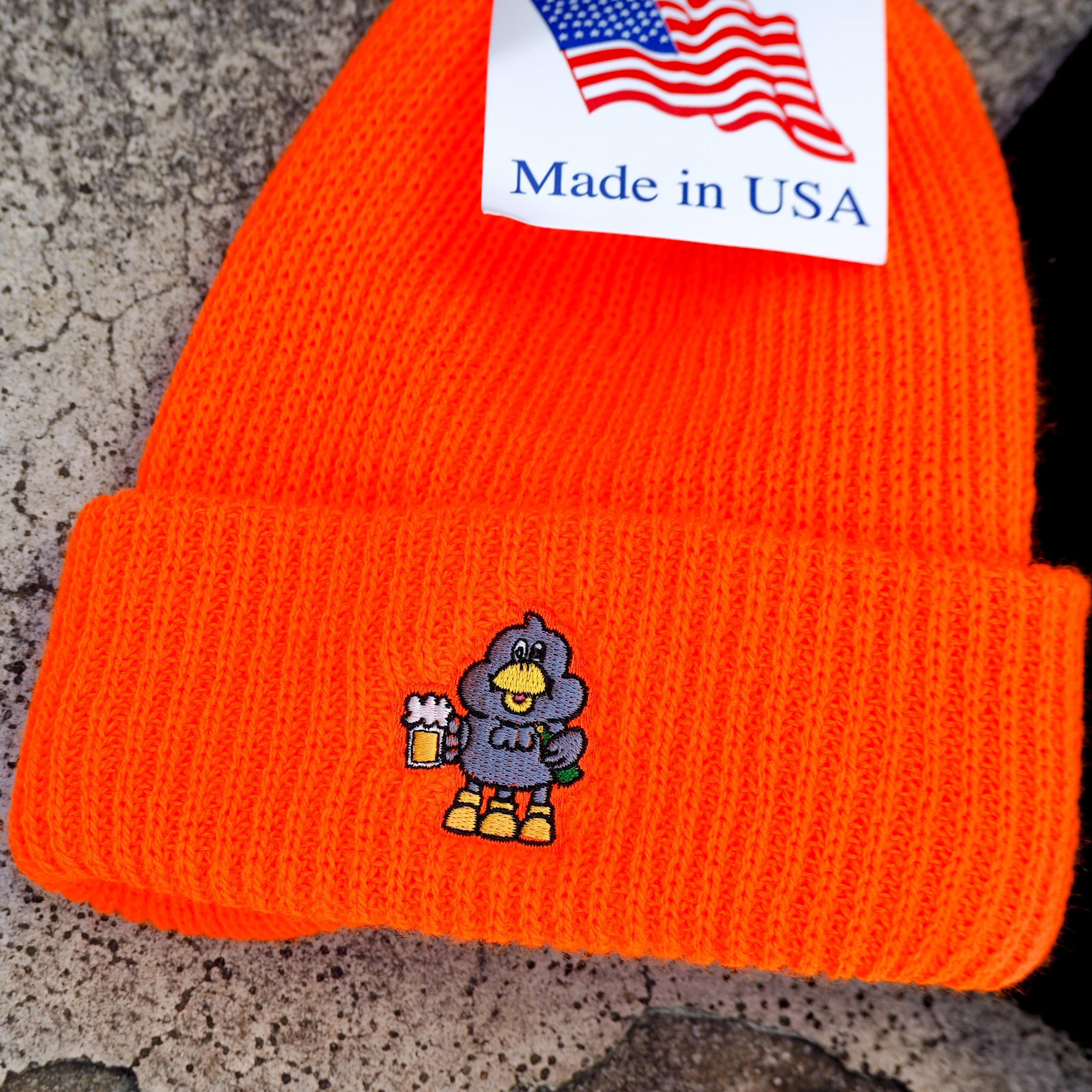 アメリカ製ボディに、日本生まれのダックロー刺繍を乗せたニットキャップ